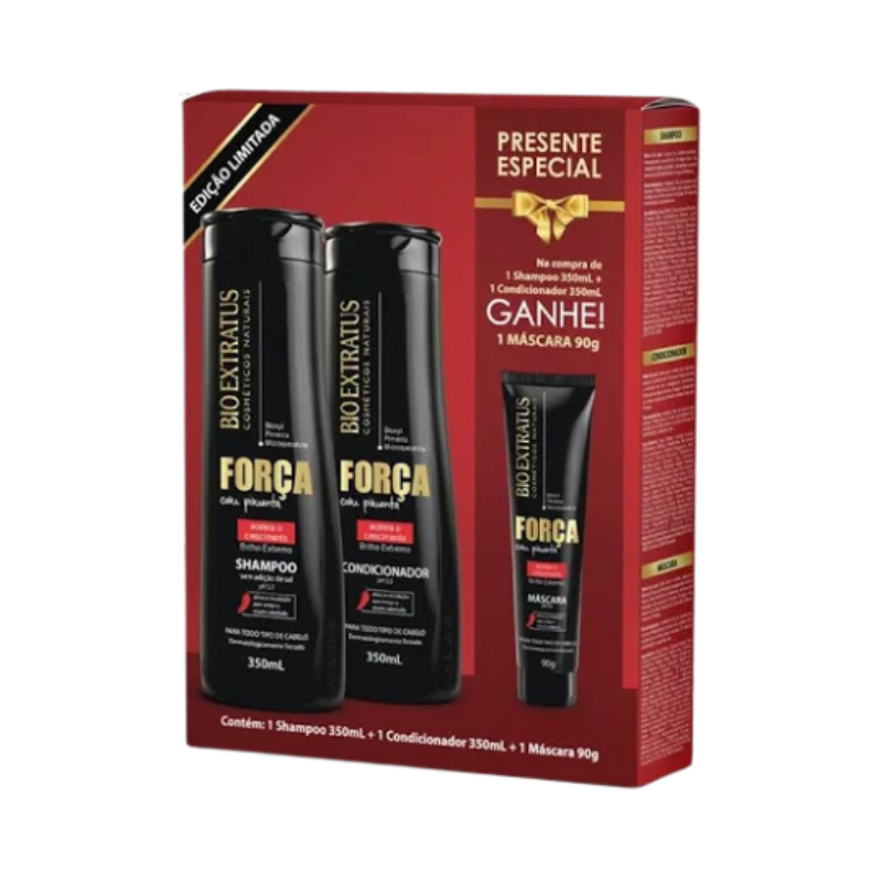 Bio Extratus Kit Força com Pimenta Shampoo 350ml + Condicionador 350ml + Máscara 90g